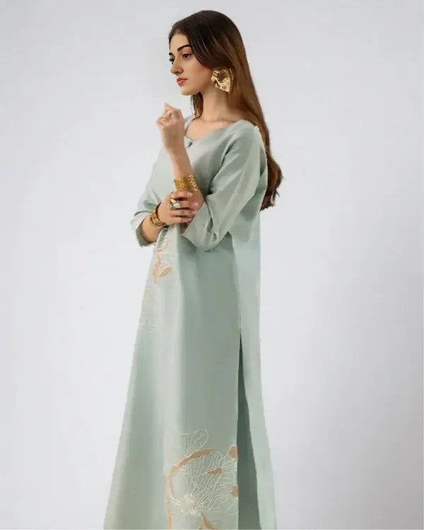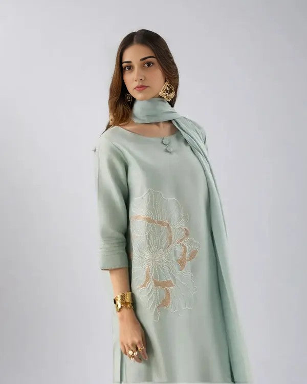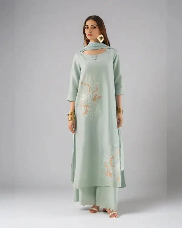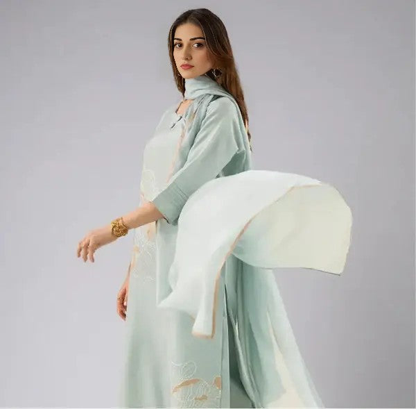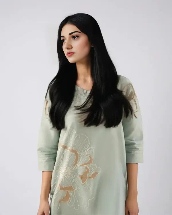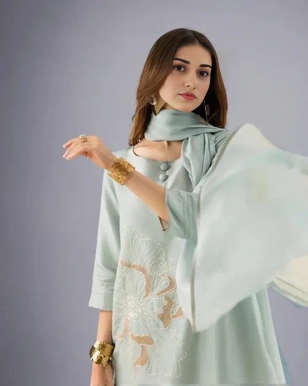 Refresh your wardrobe with the Aqua Grace Outfit, an embroidered 3-piece summer suit designed for women who value graceful comfort and timeless elegance.