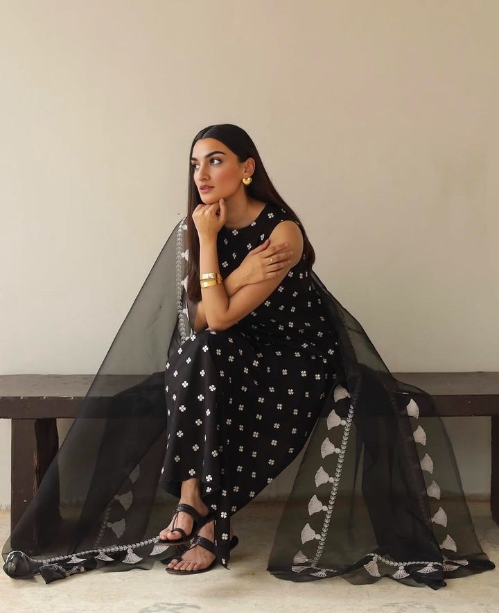 Ideal for weddings, festive occasions, and formal gatherings, Black Noir embodies classic charm with a modern edge. A must-have for women seeking a versatile yet striking outfit.